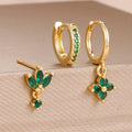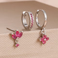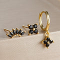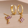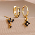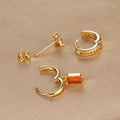 3PCS Fashion Orange Blue Zircon Hanging Earrings Set for Women Stainless Steel Flower Dangle Earring Piercing Jewelry