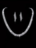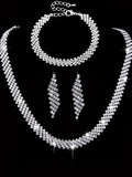 4 Bridal Jewelry Set Rhinestone Necklace Earrings Bracelet Women's Accessories
