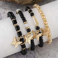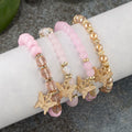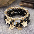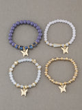 4Pcs Trendy Butterfly Beaded Bracelet Set For Women Pink Acrylic Beads Elastic Chain Bangle Female Bohemian Party Jewelry Gift