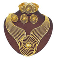 African Wedding Jewelry Set Exaggerated Design Necklace Bracelet Earring Rings For Women Fashion Party Gift 18K Gold Plated