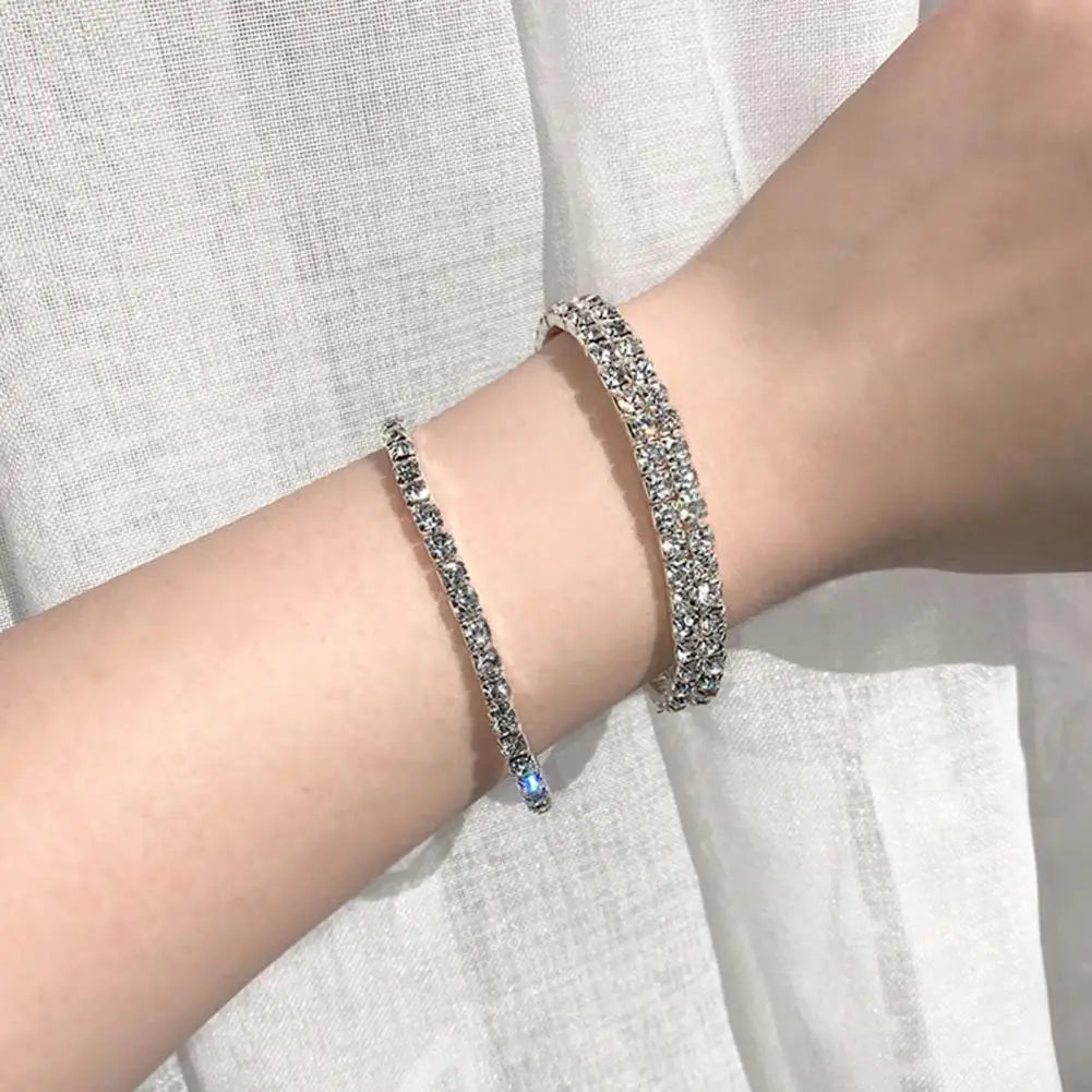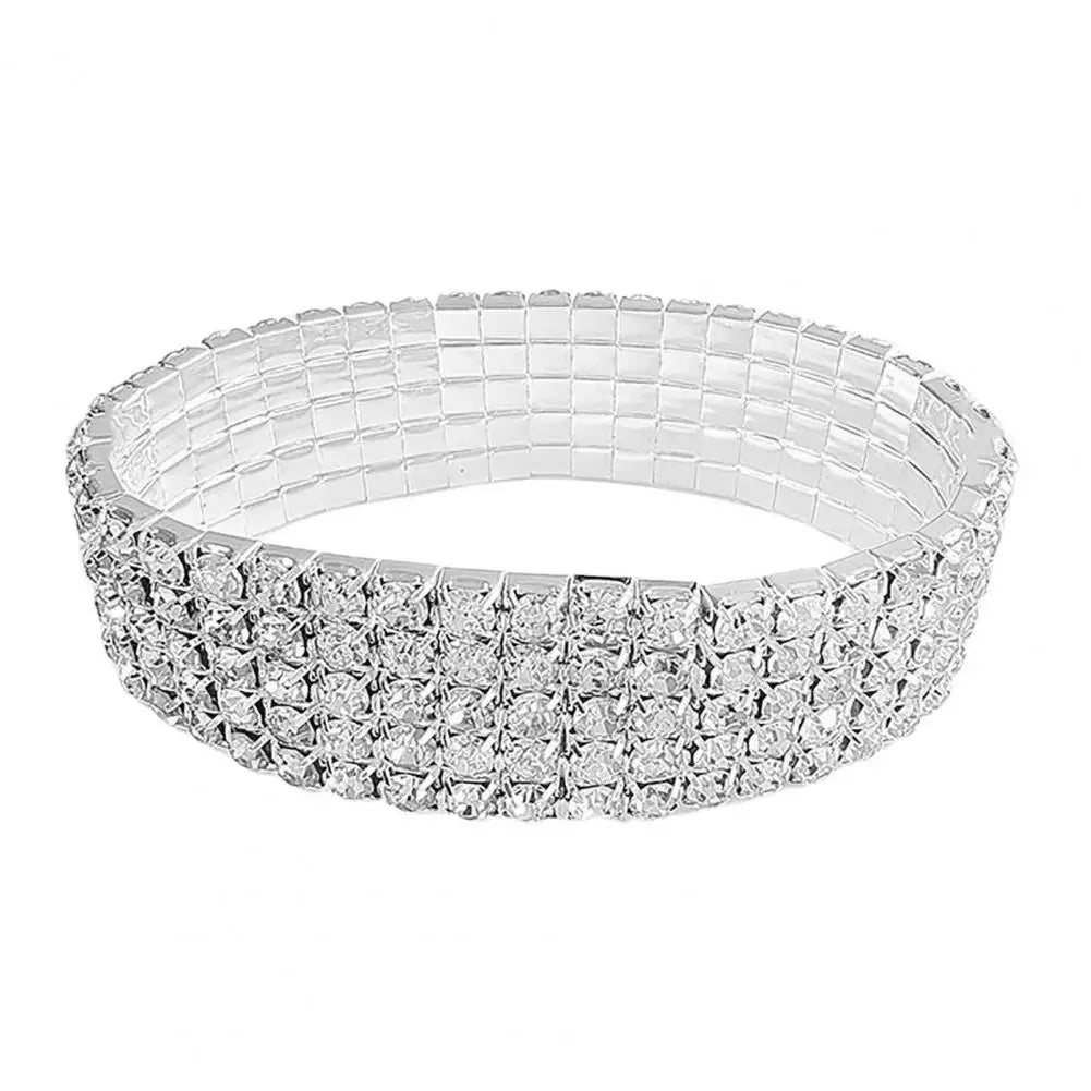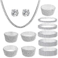 Bracelet Necklace Earrings Elegant Shiny Rhinestones Multi-layer Geometric Sparkling Decorative Gift Women Bangle Necklace Ear Studs Wedding Jewelry Fashion Accessory