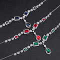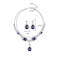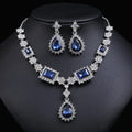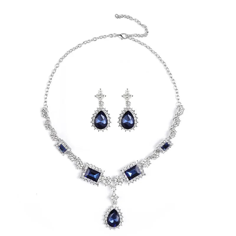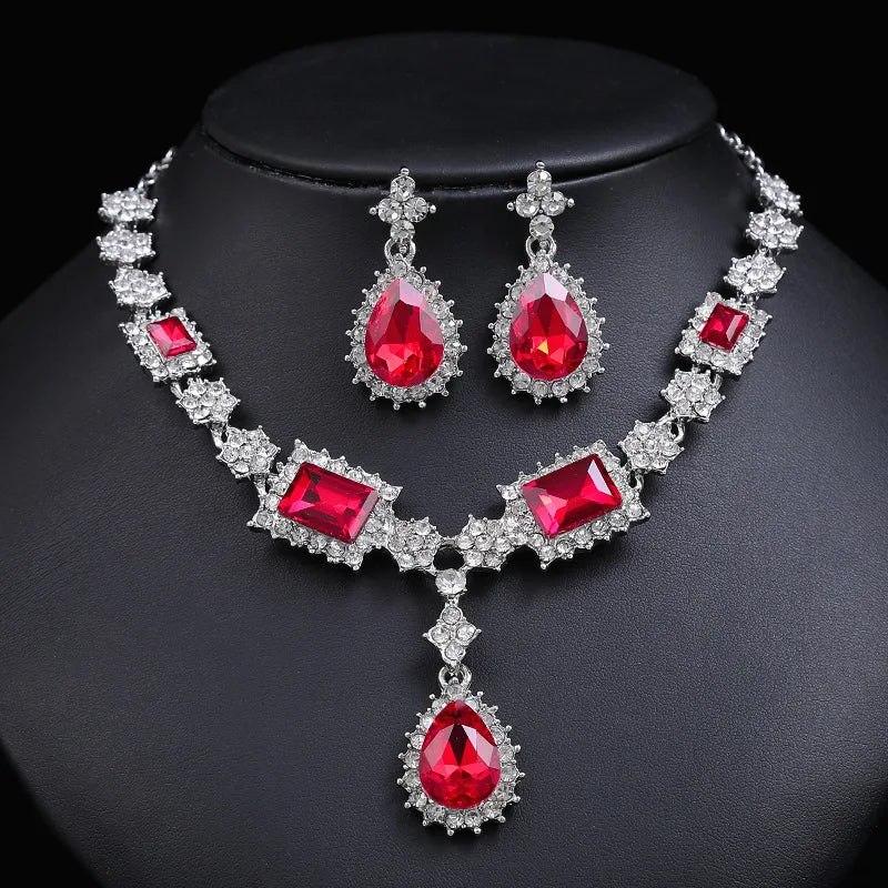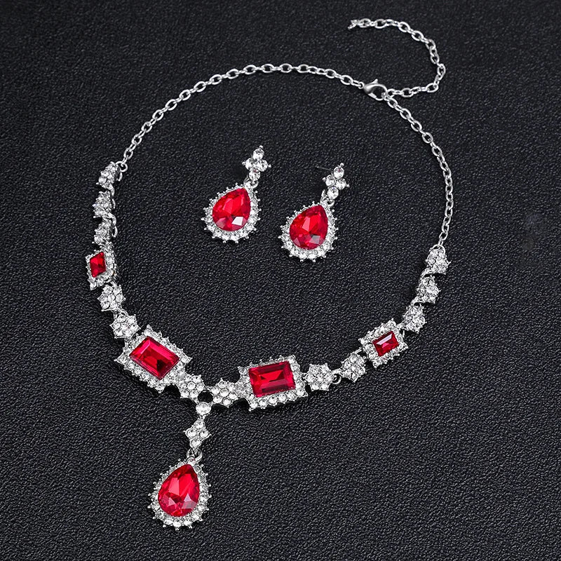 Bridal Jewelry Set Wholesale Silver Plated Red Green Blue Crystal Rhinestone Drop Earrings and Luxury Wedding Necklace for Women