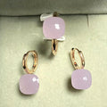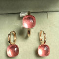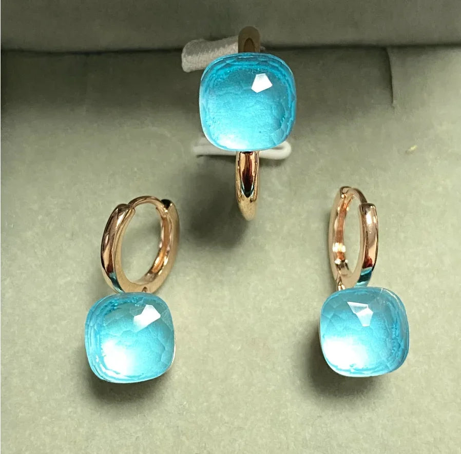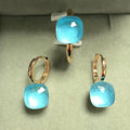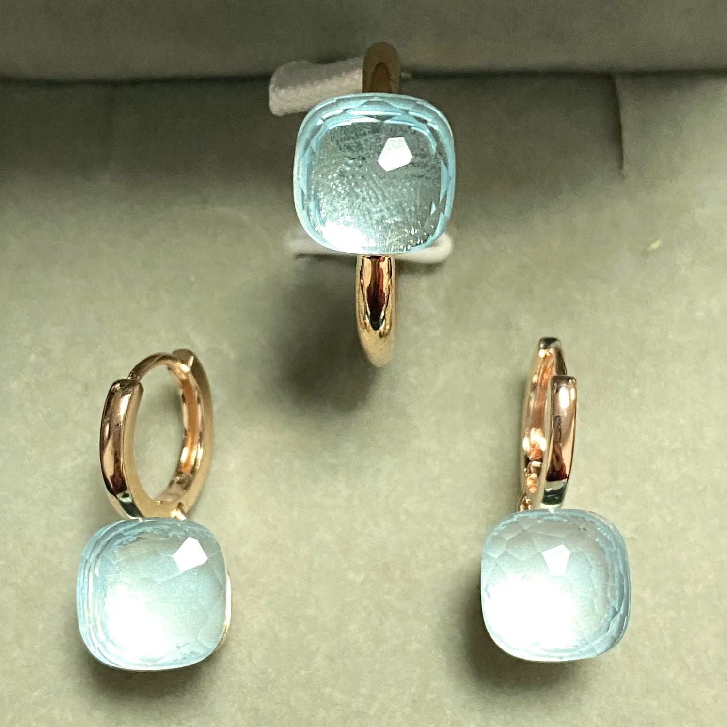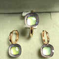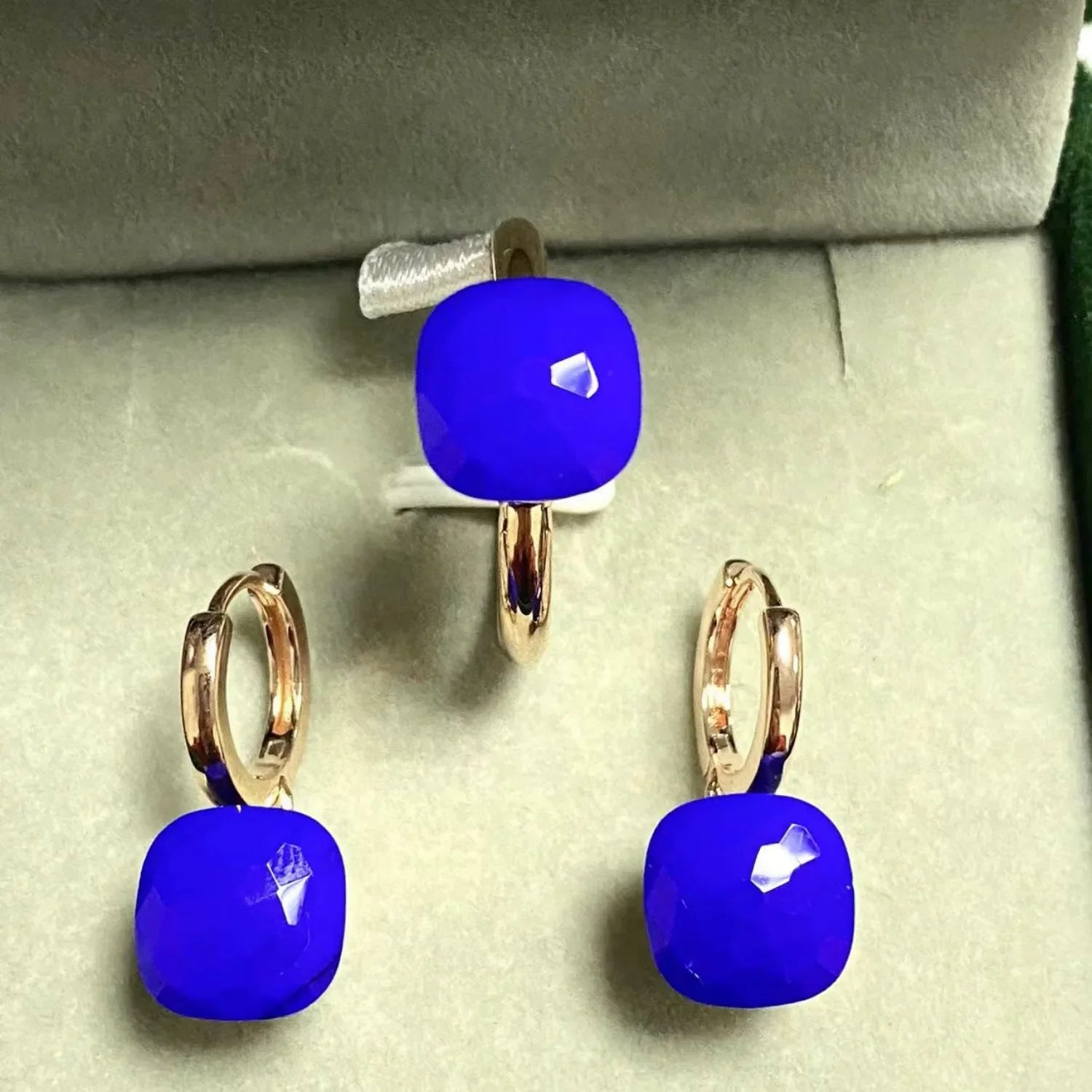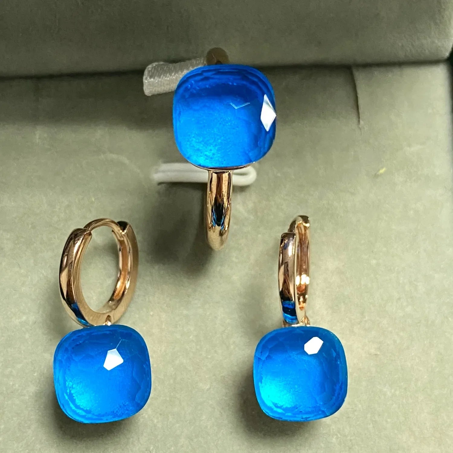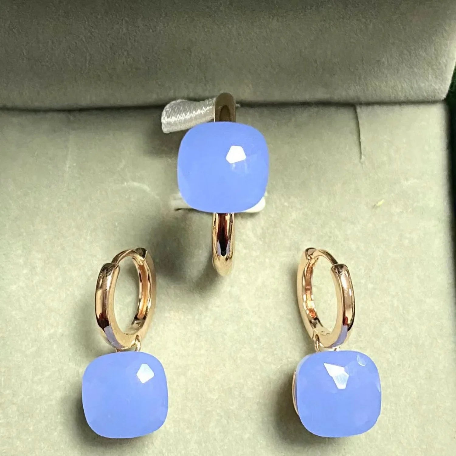 Classic Jewelry Set For Women Square Blue Crystal Ring Earrings Set Rose Gold Plated Colorful Candy Bijoux Set
