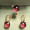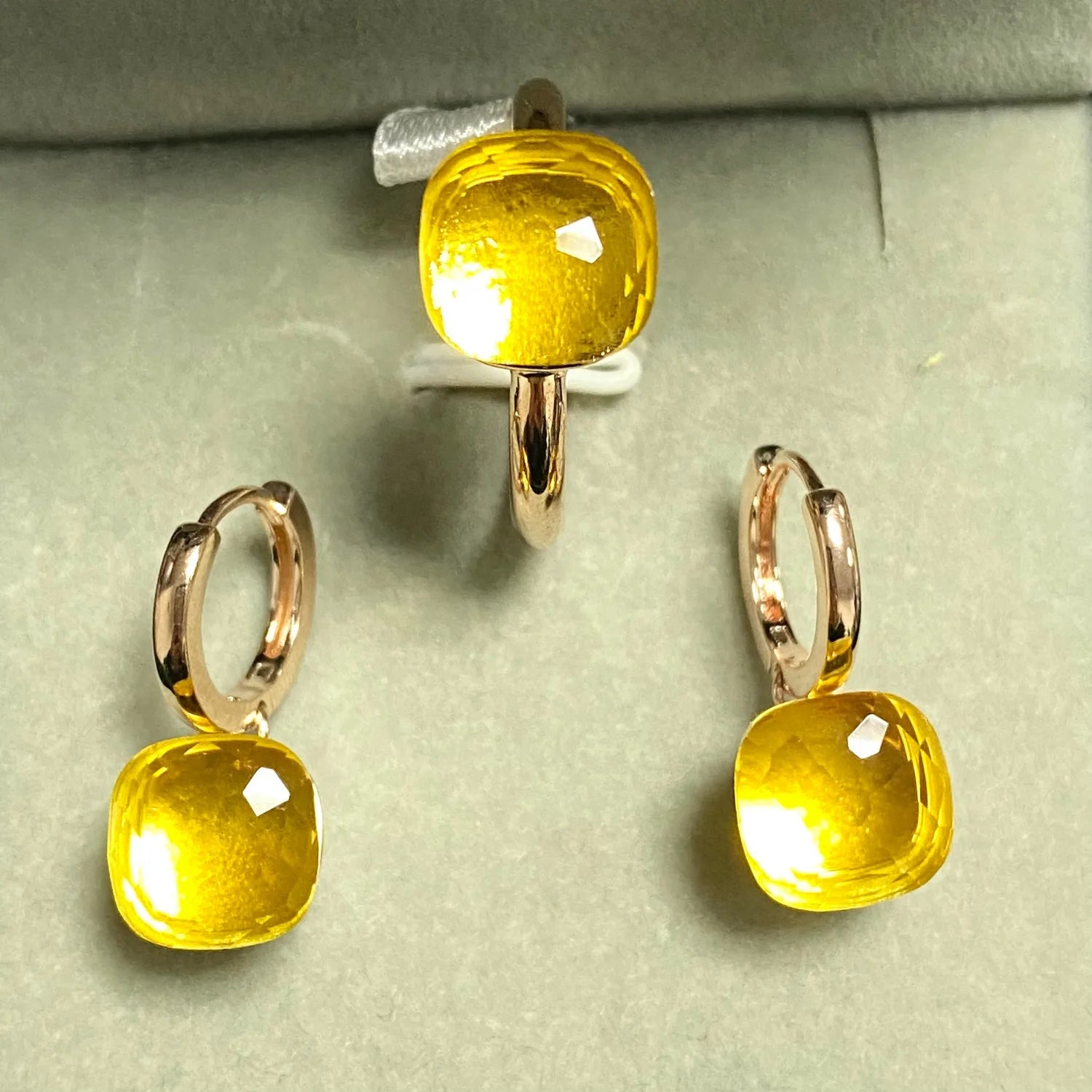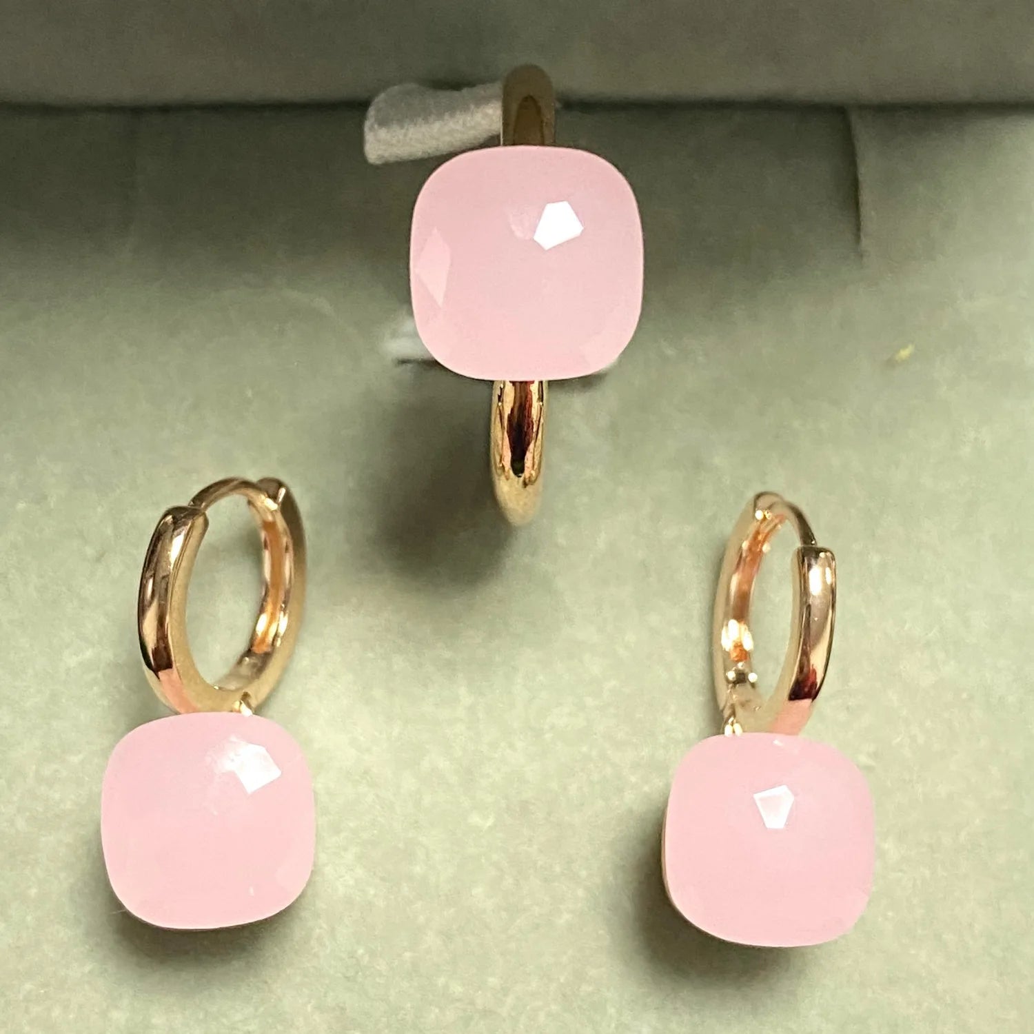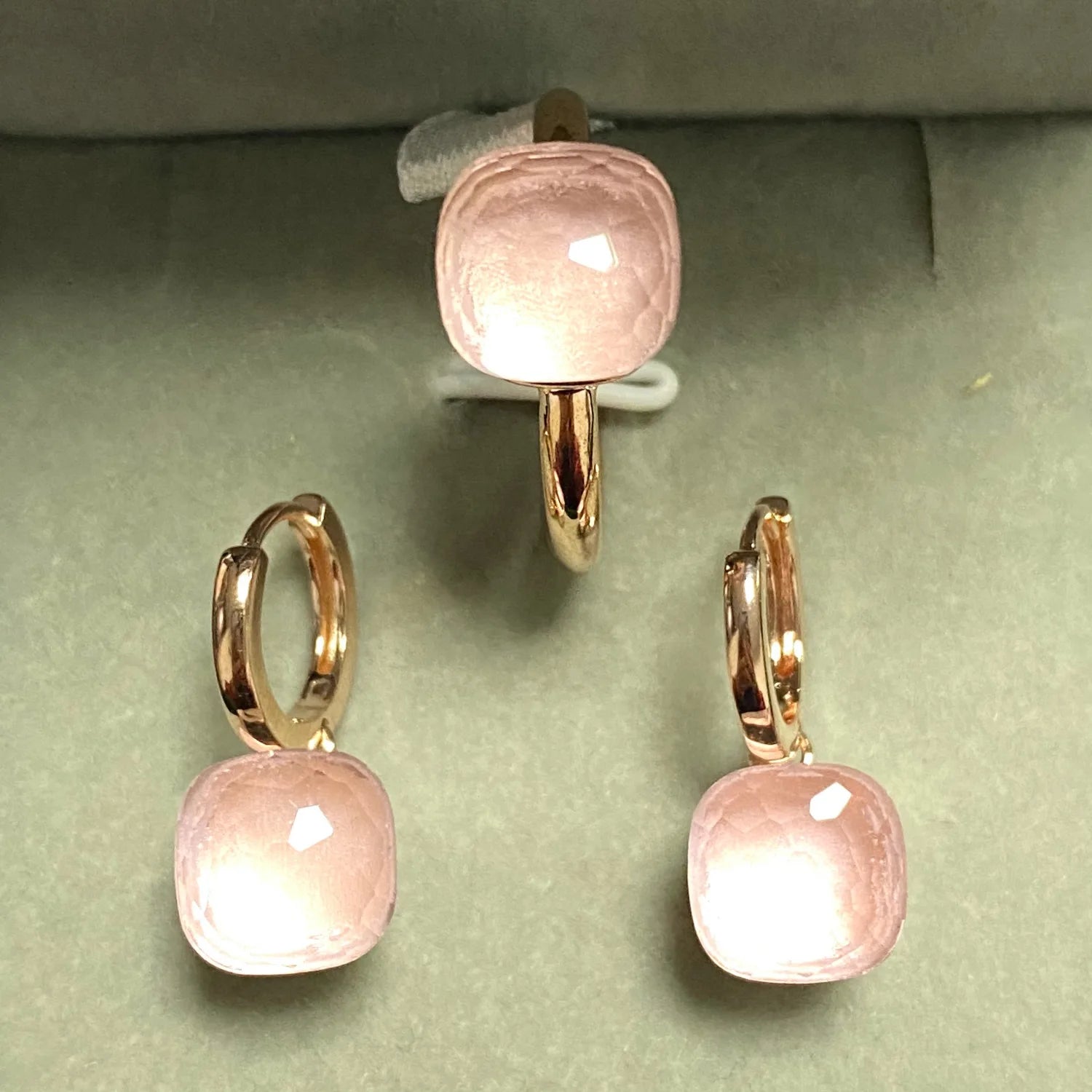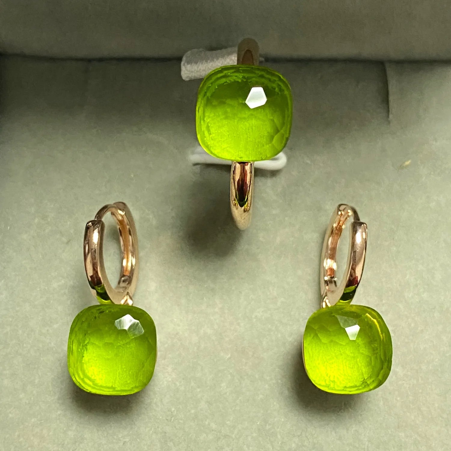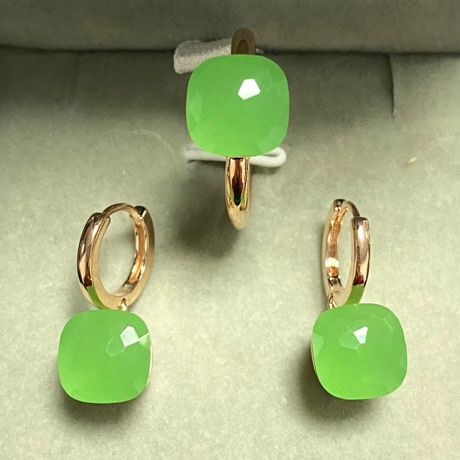 Classic Jewelry Set For Women Square Blue Crystal Ring Earrings Set Rose Gold Plated Colorful Candy Bijoux Set