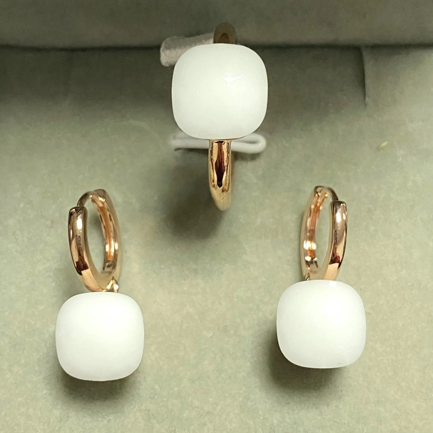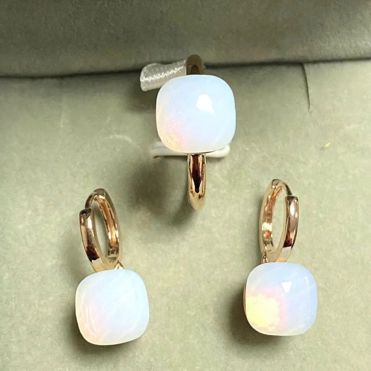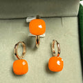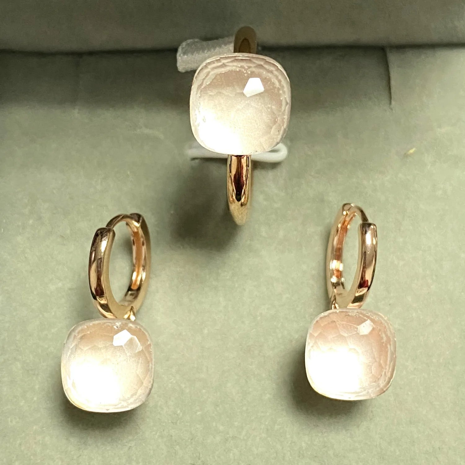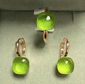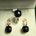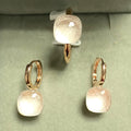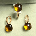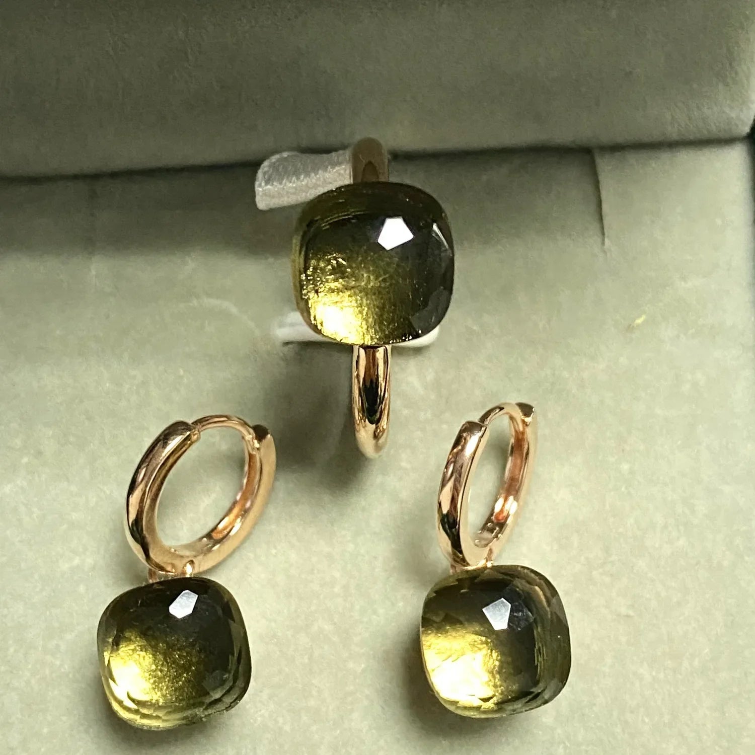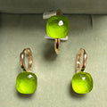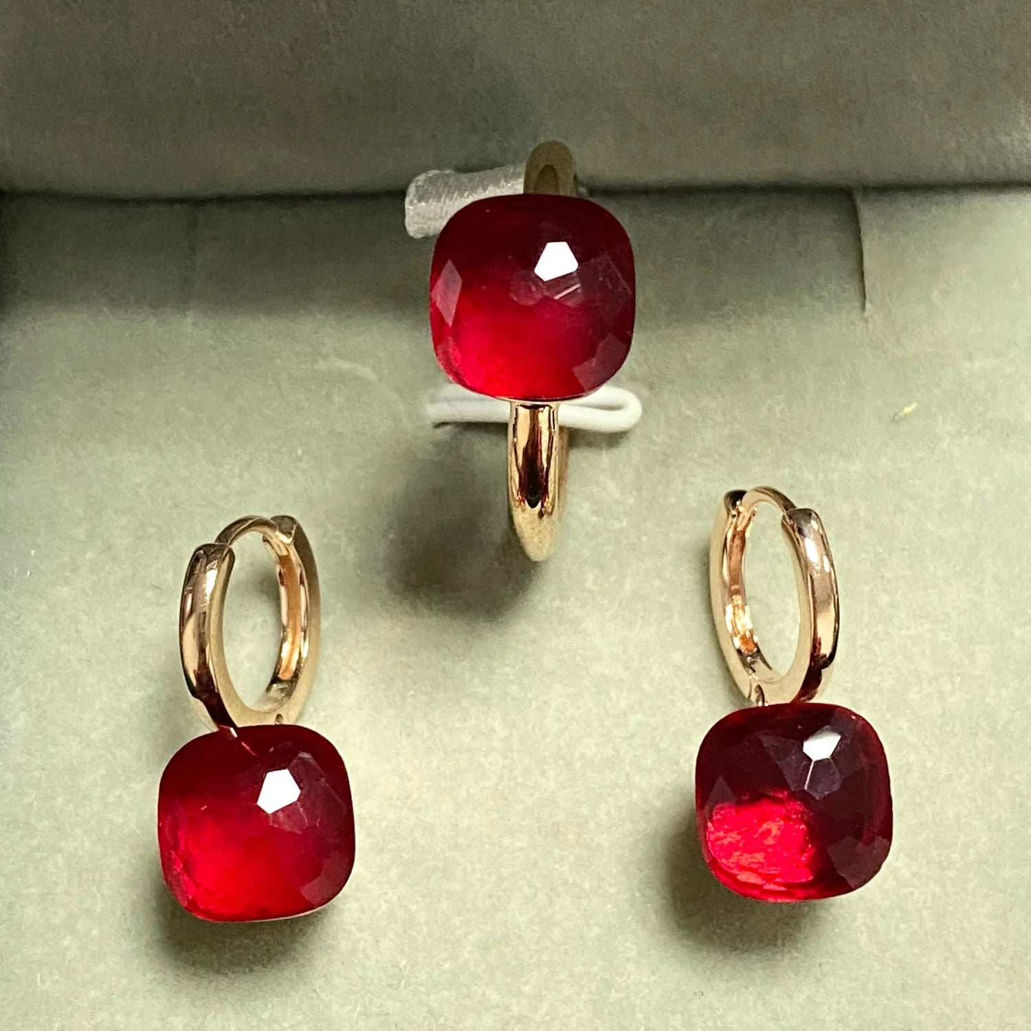 Classic Jewelry Set For Women Square Blue Crystal Ring Earrings Set Rose Gold Plated Colorful Candy Bijoux Set