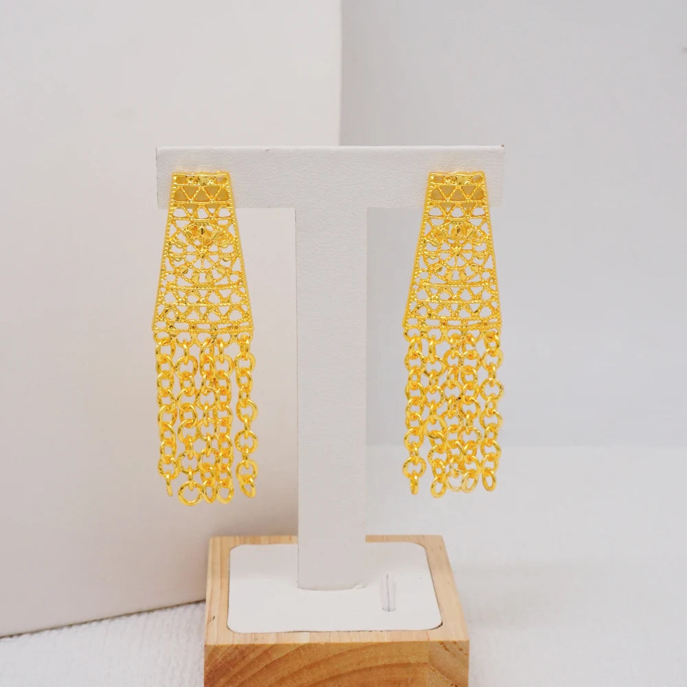 Dubai Jewelry Set Golden Color Drop Earring Cuff Bracelet Bangle Pendant Necklace Arab Wedding Gift
