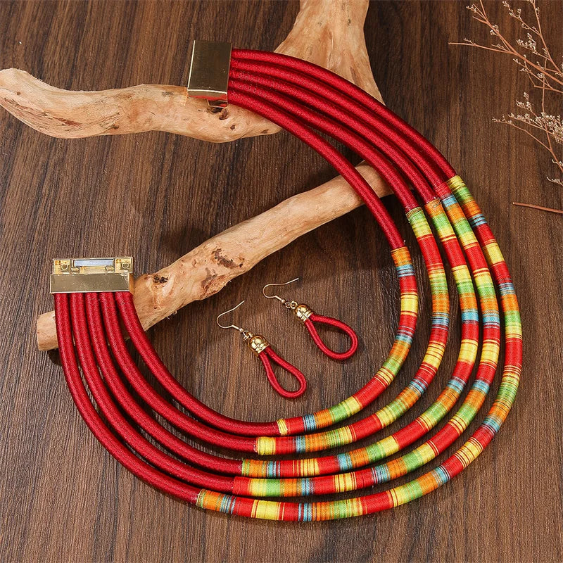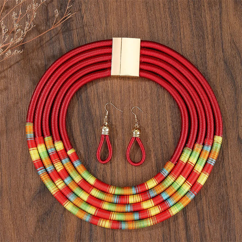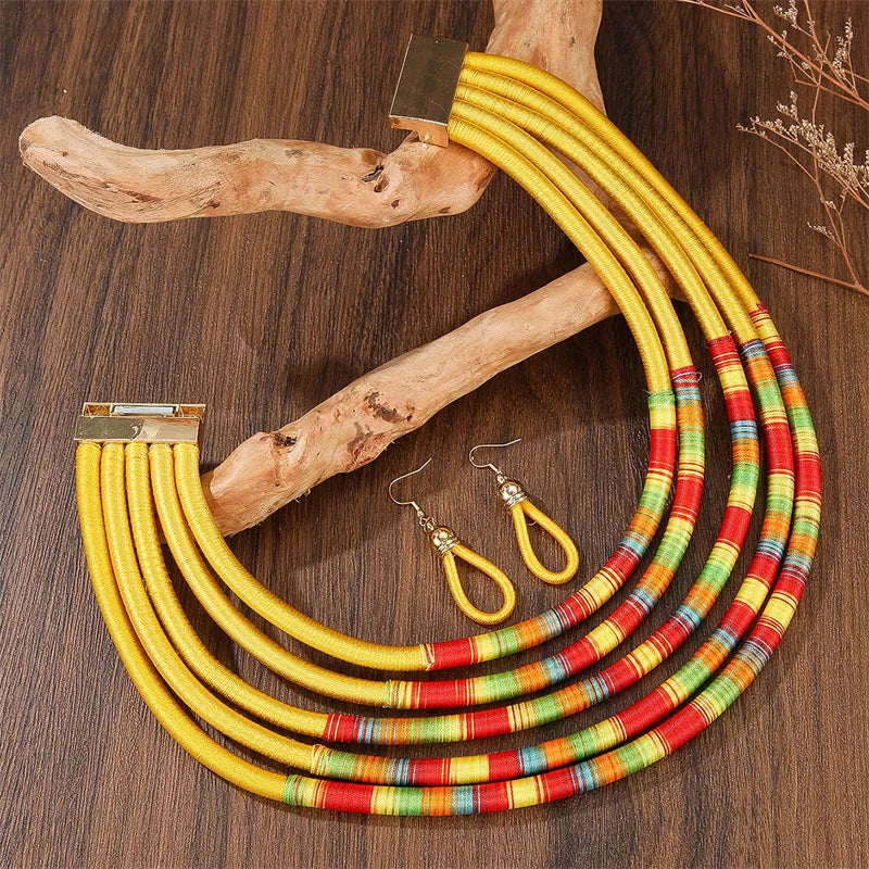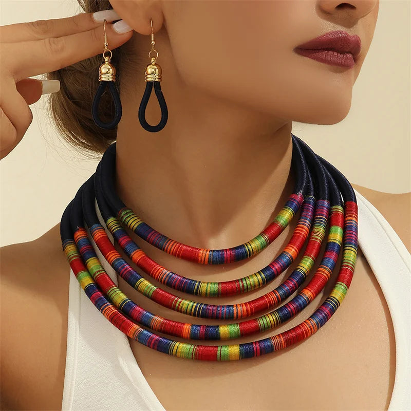 Fashion African Jewelry Set for Women Necklace Earrings Multi-layer Woven Jewelry Choker Necklaces Set Bridal Wedding Jewelry