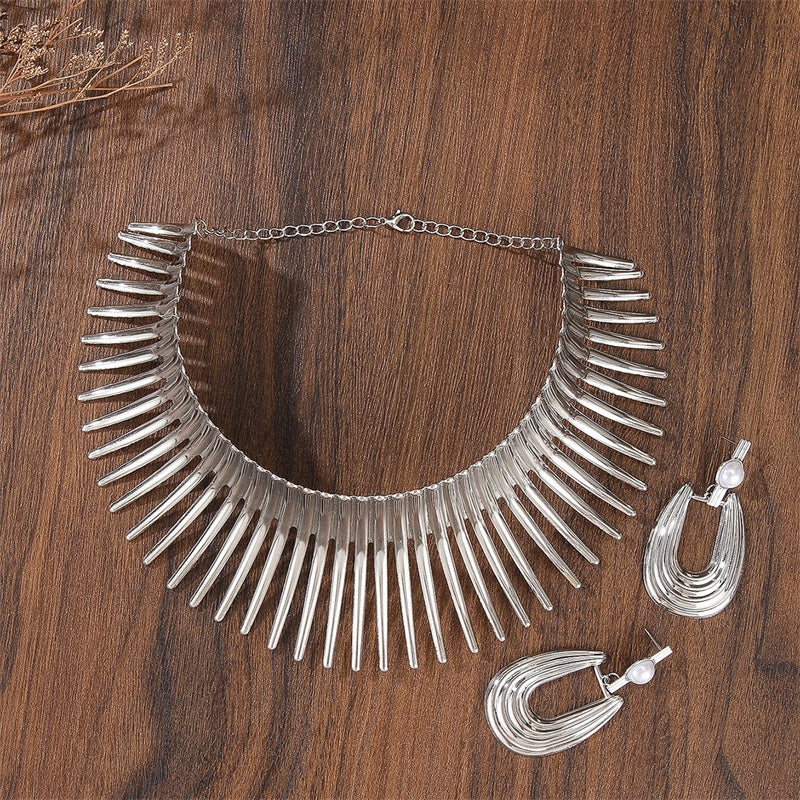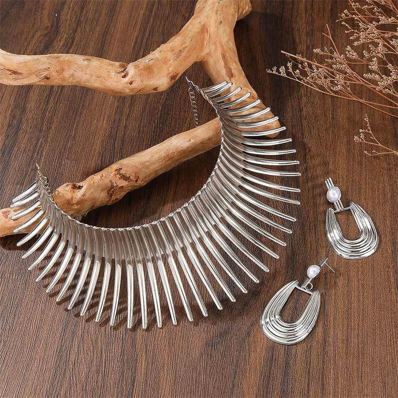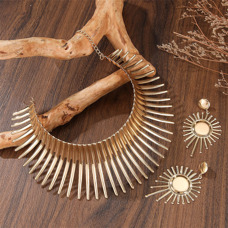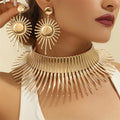 Fashion Jewelry Set Gold Color Metal Big Exaggerated Torque Choker Earrings Set Jewelry African Punk Gifts