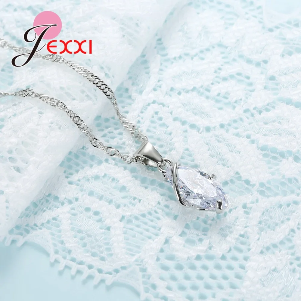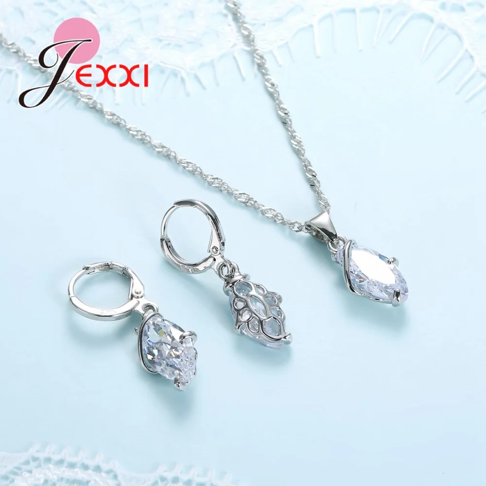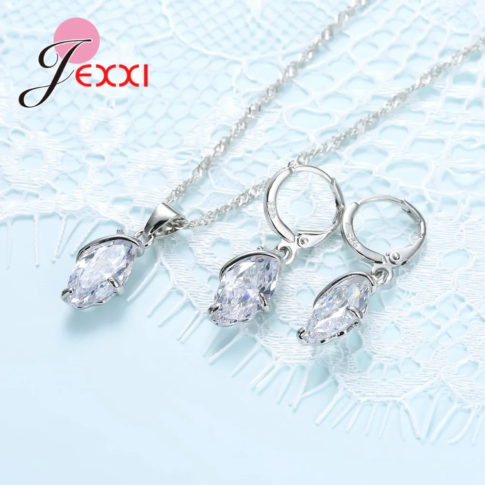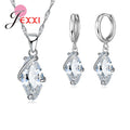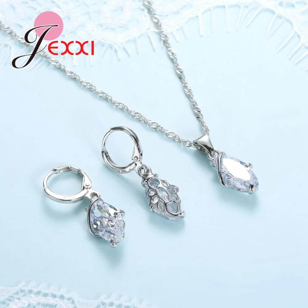 Fashion Shiny Crystal Jewelry Set For Women Silver Casual Pendant Necklace Earrings Brincos Wedding Bijoux