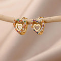 Hollow Zircon Heart Earrings For Women Stainless Steel Gold Color Heart Earring Luxury Wedding Couple Jewelry Gift Free Shipping