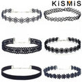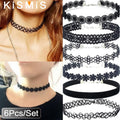 KISMIS 6Pcs/Set Black Lace Chokers Necklace Set Vintage Gothic Punk Elastic Necklace Women'S Jewelry 1Sets