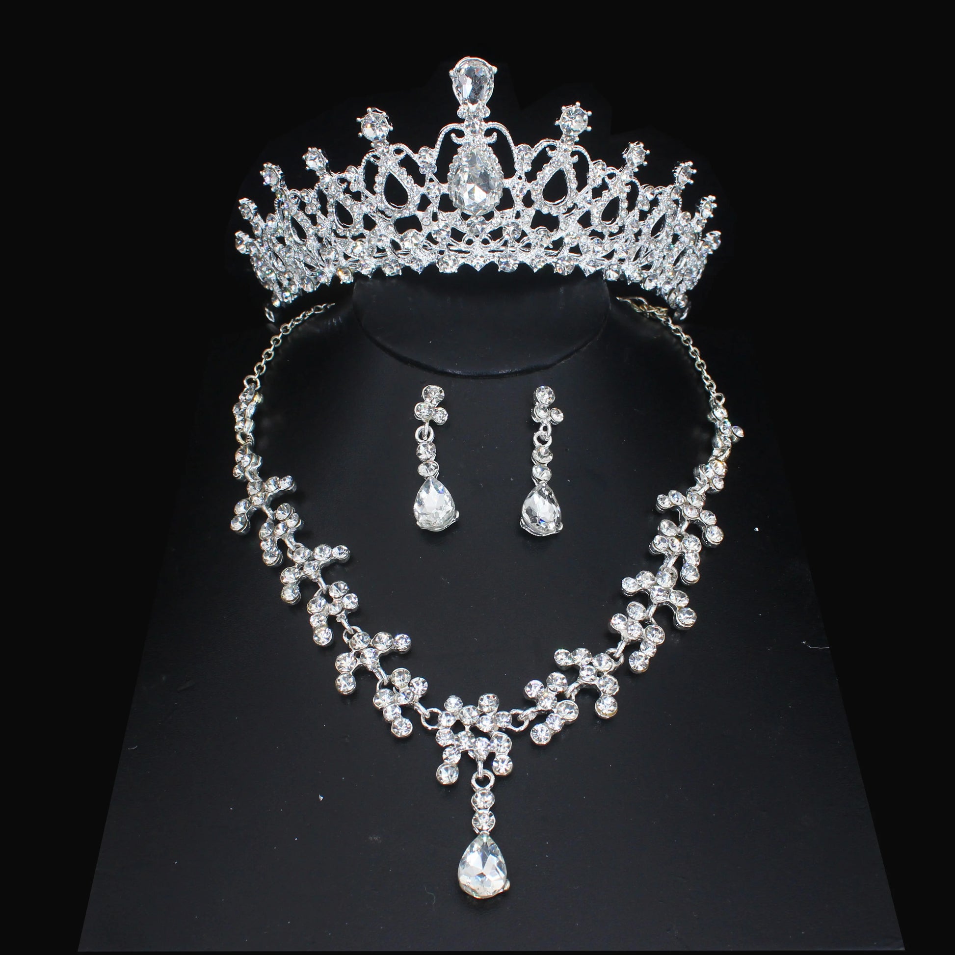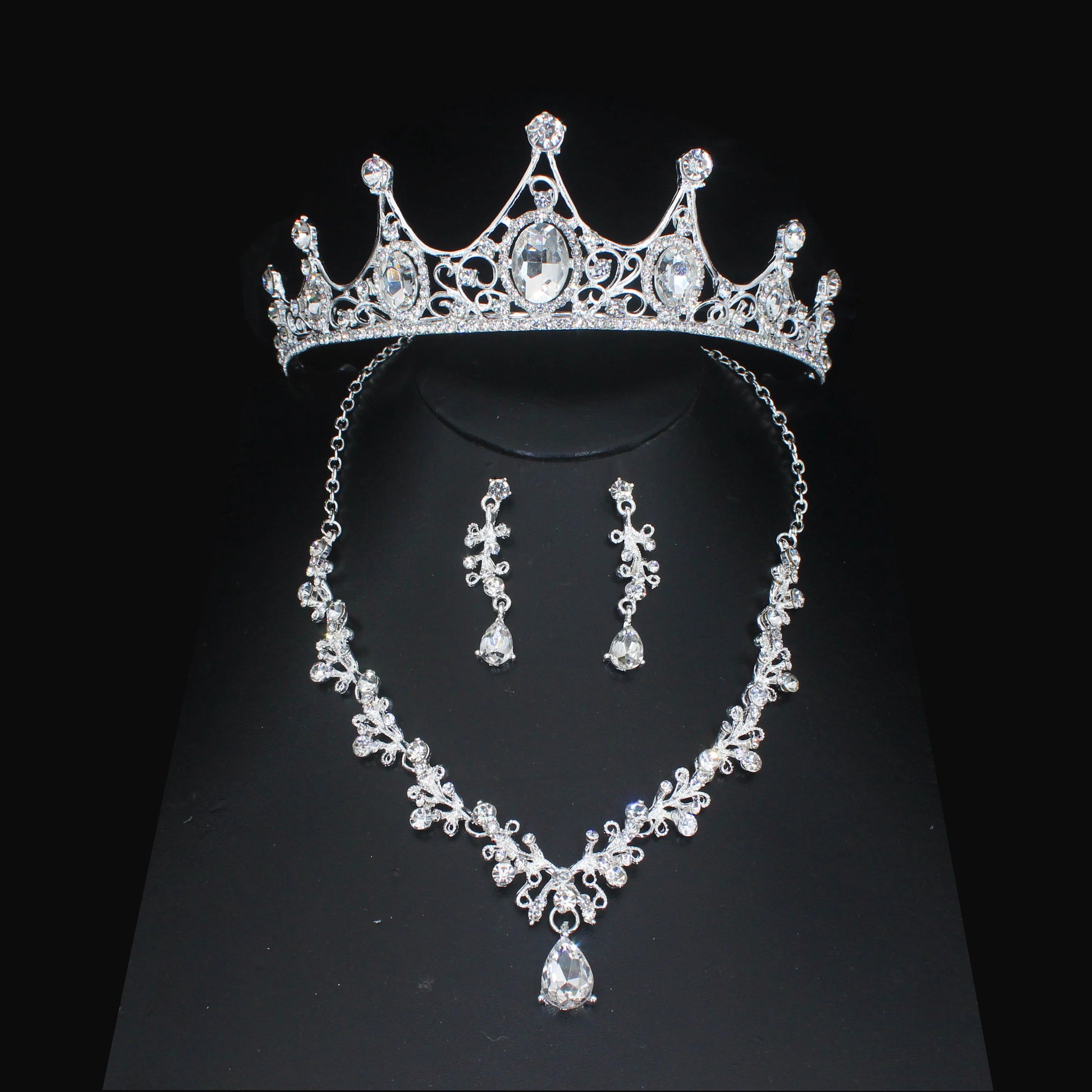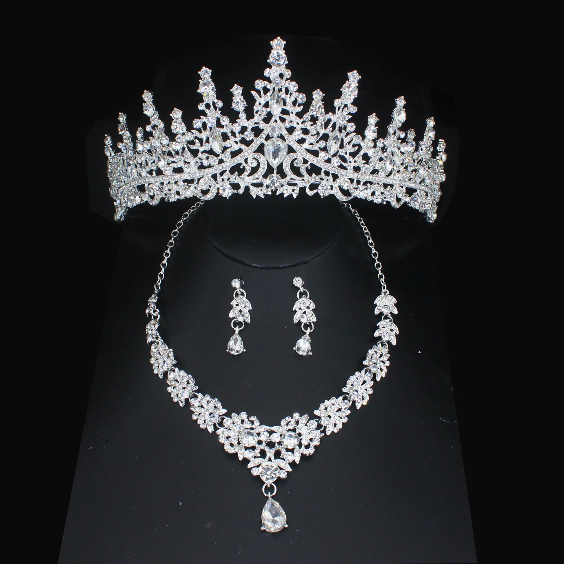 High Quality Fashion Crystal Wedding Bridal Jewelry Sets Women Bride Tiara Crowns Earring Necklace Wedding Jewelry Accessories