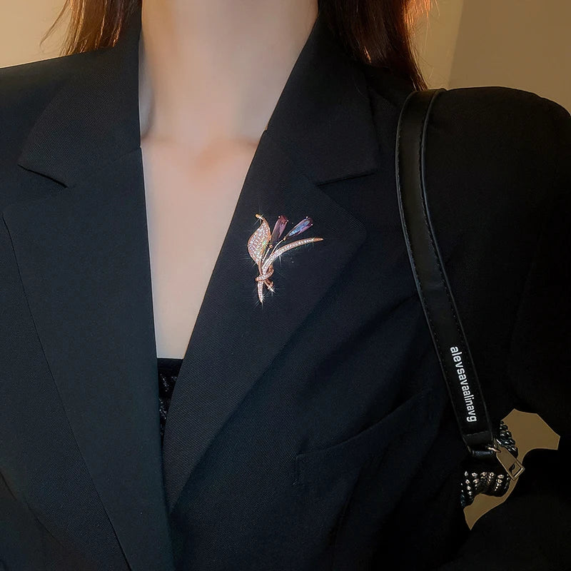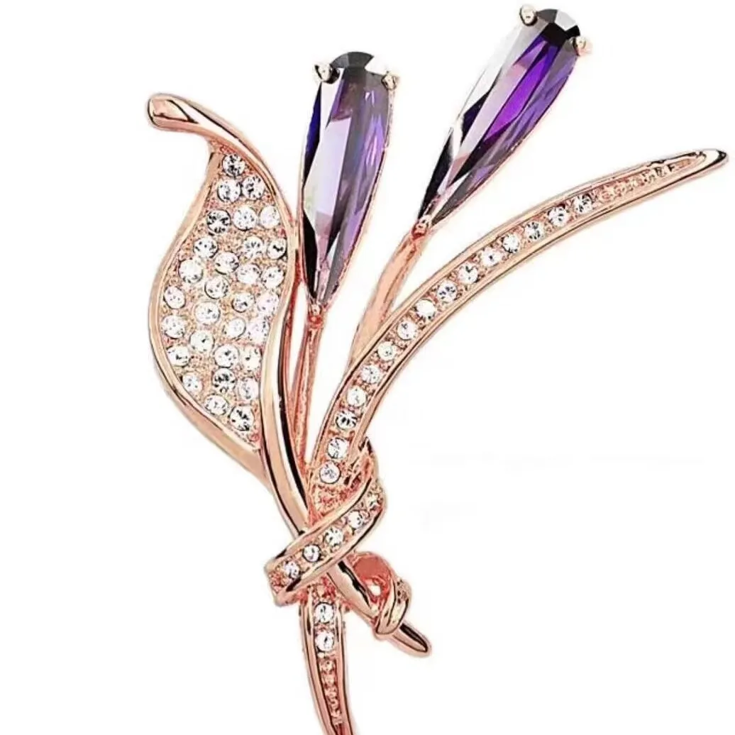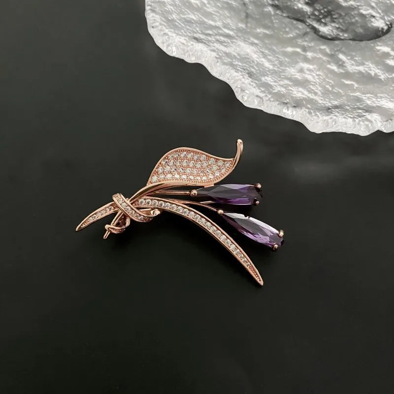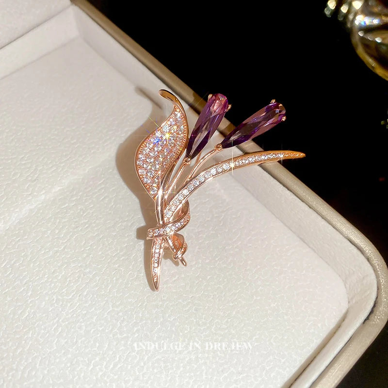 Luxury Lily Flower Brooches Women's Exquisite Crystal Bouquet Plant Corsage Pin Suit Jewelry Accessories