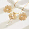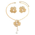 Necklace Earrings Set Elegant Gold Color Flowers Pendant Ladies High-end Inlaid Pearl Clavicle Jewelry Set Decoration.